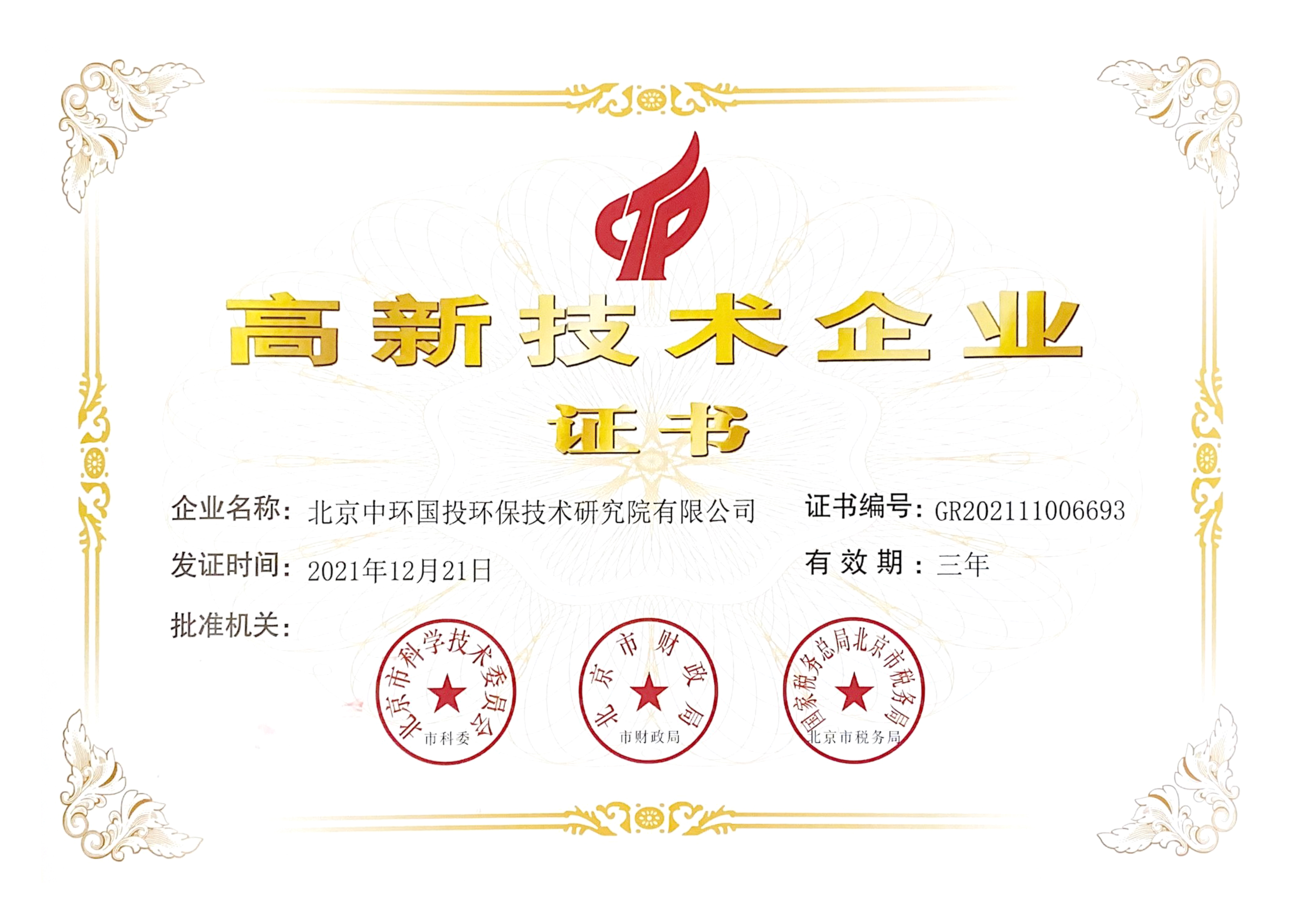 高新技術企業證書(中環設計院)
